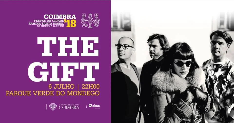 THE GIFT sexta-feira, 6 de julho de 2018 10:00 p.m. 11:00 p.m. 22:00 23:00 Parque Verde do Mondego Parque Verde do Mondego Coimbra Portugal (mapa) Calendário Google ICS THE GIFT | Parque Verde do Mondego | 22h00 | Entrada livre (informações: Câmara Municipal de Coimbra) Mais Informações:https://www.cm-coimbra.pt/