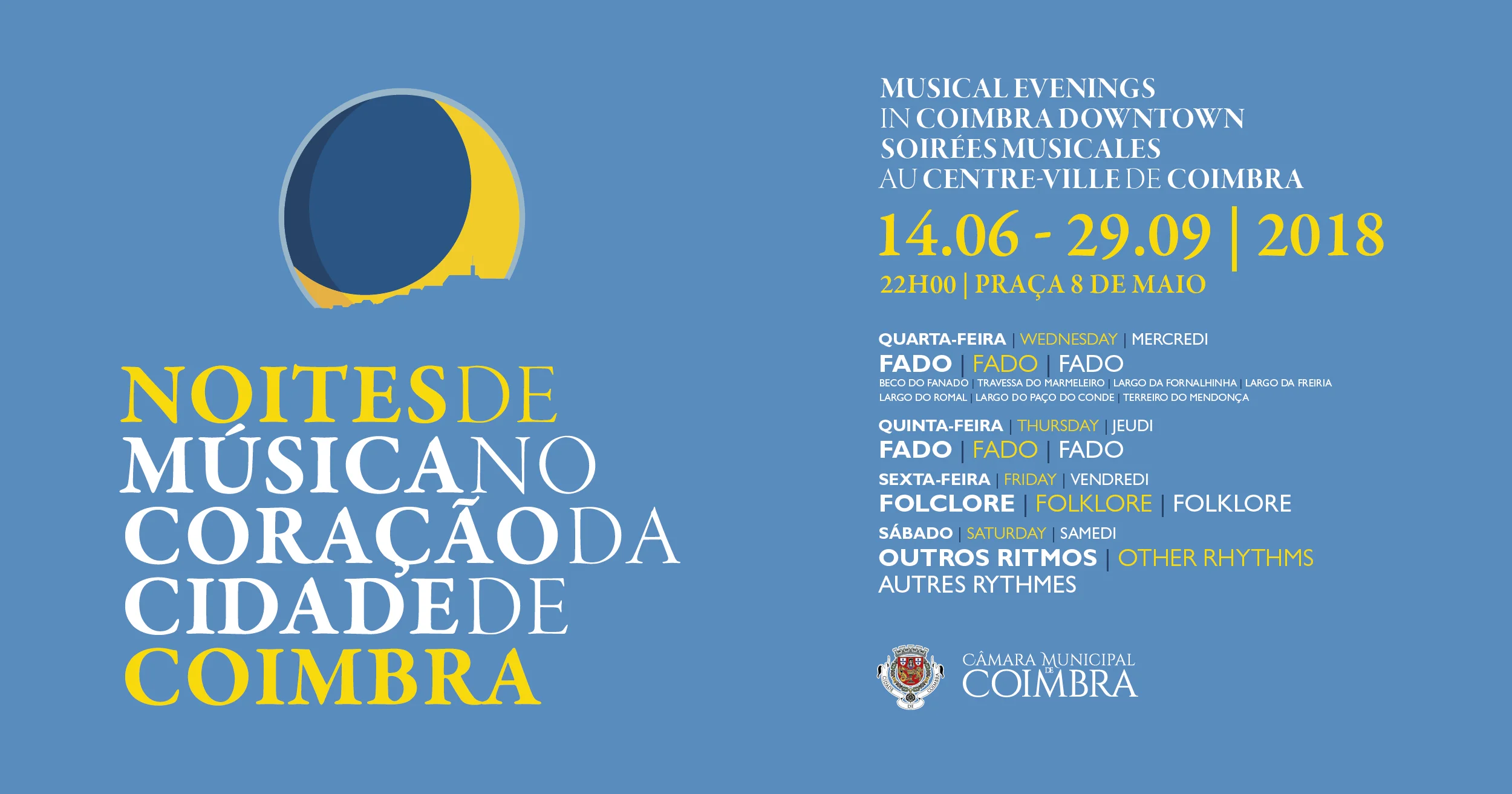 Mais Informações: https://www.cm-coimbra.pt/index.php/areas-de-intervencao/cultura/agenda/item/5981-noites-de-musica-no-coracao-da-cidade-de-coimbra-animam-o-verao-de-2018