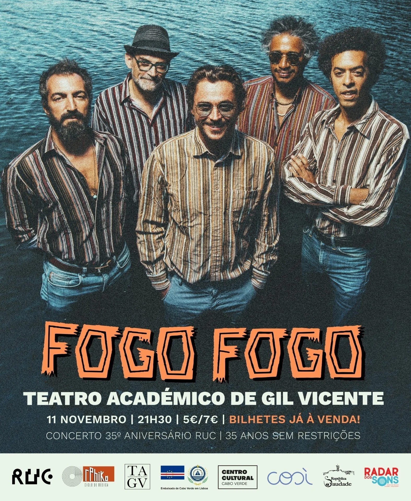 Para festejar "35 anos no ar sem restrições" da RUC, Os Fogo Fogo apresentam ao vivo o seu novo trabalho de originais “Fladu Fla”, no dia 11 de Novembro, pelas 21h30. Integrarão ainda o alinhamento sons de clássicos do “funaná” que a banda transporta para os tempos de hoje, utilizando instrumentos elétricos e formações musicais semelhantes às dos grupos de pop/rock e afro/funk/reggae dos anos 60/70.Com influências de rock psicadélico e dub, alguns dos estilos mais experimentais dessas épocas, procuram levar mais longe essa tradição, à luz dos dias de hoje. Nesse sentido, a proposta de Fogo Fogo demarca-se das demais, quase exclusivamente ligadas à música eletrónica.