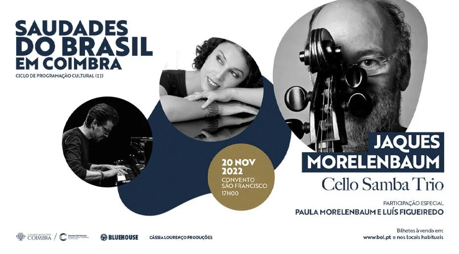 Inserido no ciclo programático “Saudades do Brasil em Coimbra”, Jaques Morelenbaum, uma das mais icónicas figuras da música brasileira, ruma a Coimbra para um concerto único que marca o encontro inédito, a convite do Convento São Francisco, entre o seu aclamado Cello Samba Trio (com a singular intérprete Paula Morelenbaum como convidada) e o reconhecido pianista e compositor conimbricense Luís Figueiredo. Num ambiente intimista, entre o samba e a bossa nova, desfila uma cuidada e pessoalíssima seleção dos mais emblemáticos compositores da música brasileira.